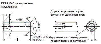 DIN 916 Винт установочный с внутренним шестигранником и засверленным концом. Конец установочного винта имеет специальную форму с внутренним конусом, служащую для фиксации изделий относительно друг друга.