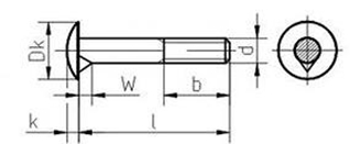 Болты по ГОСТ 7801-81 – это мебельные болты с увеличенной полукруглой головкой и усом. Диаметр таких болтов варьируется от 6мм до 20 мм, а их длина от 25 мм до 200 мм. На рисунке, приведенном ниже, вы можете посмотреть, как схематично выглядят болты мебельные по ГОСТ 7801-81: