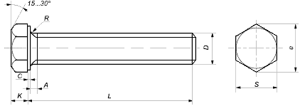 DIN 933 Болт с полной резьбой и шестигранной головкой, размер резьбы от М3 до М64, длина болта от 5 до 340 мм, класс точности A, B. Болты DIN 933 применяются для соединения и крепления деталей и конструкций в строительстве и машиностроении.Материалы: