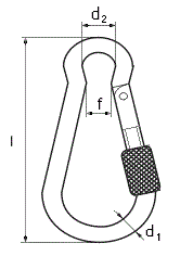 Размер карабина c фиксатором DIN 5299 D определяется по диаметру поперечного сечения проволоки (прутка).