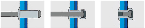Основное применение заклепки вытяжной – неразъемное соединение тонких стальных листов и прочих листовых материалов. Также заклепка вытяжная используется для монтажа фасадных пластин, гофролистов и т.п. к различным конструкциям.